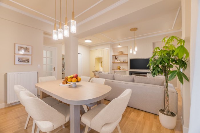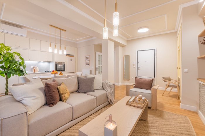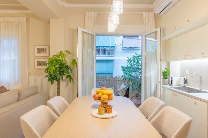 85sqm apartment for sale 1st floor 2 bedrooms (1 master) 2 bathrooms Jacuzzi Fireplace Open kitchen plan Fully renovated January 2022 Fully furnished and equipped Autonomous gas heating Building of 1970 Location: quiet road, close to coffee shops, bars, restaurants, super markets, 5’ on foot to metro station, 10’ on foot to Acropolis