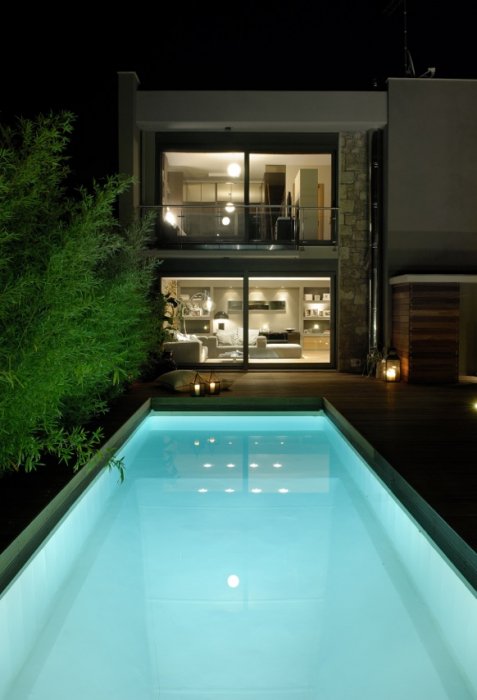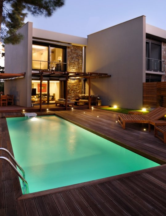 There still only 3 villas available. All villas spread over 3 floors and have sea view and a private pool. In the first villa the pool is on the same level as the ground floor while in the other two villas there is direct access to the private pool and the garden from the lower level.