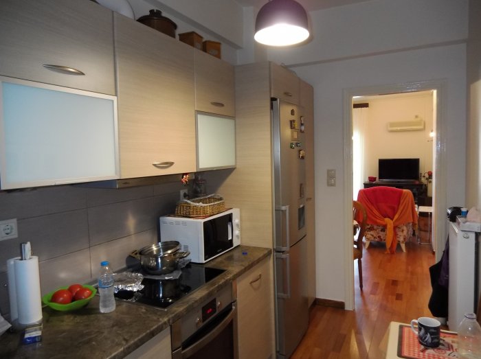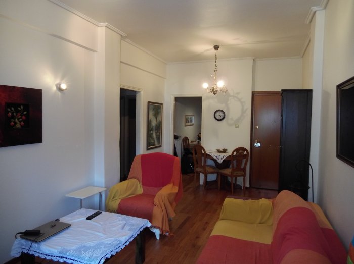Apartment at Pagrati in total area of : 67m2 on the 2nd floor.It consists of 2 bedrooms, bathroom, separate kitchen and living room. It has autonomous heating system with has, security door, double glazed windows, nets and kitchen with electric appliances.